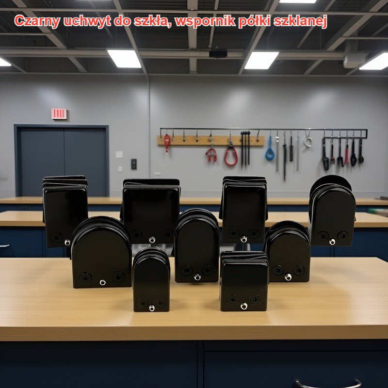 Czarny uchwyt do szkła, wspornik półki szklanej