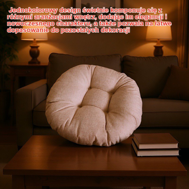 ● Okrągła, pogrubiona poduszka doskonale sprawdzi się zarówno na sofie, jak i w aranżacji tatami, zapewniając wyjątkowy komfort i stylowy wygląd każdego wnętrza. ● Wykonana z wysokiej jakości materiałów, poduszka jest trwała, łatwa w czyszczeniu oraz odporna na codzienne użytkowanie, co gwarantuje długotrwałe zadowolenie z zakupu. ● Jednokolorowy design świetnie komponuje się z różnymi aranżacjami wnętrz, dodając im elegancji i nowoczesnego charakteru, a także pozwala na łatwe dopasowanie do pozostałych dekoracji. ● Idealna do salonu, sypialni czy przestrzeni tatami – zapewnia wygodne podparcie pleców oraz siedzisko podczas odpoczynku, czytania lub relaksu z rodziną.